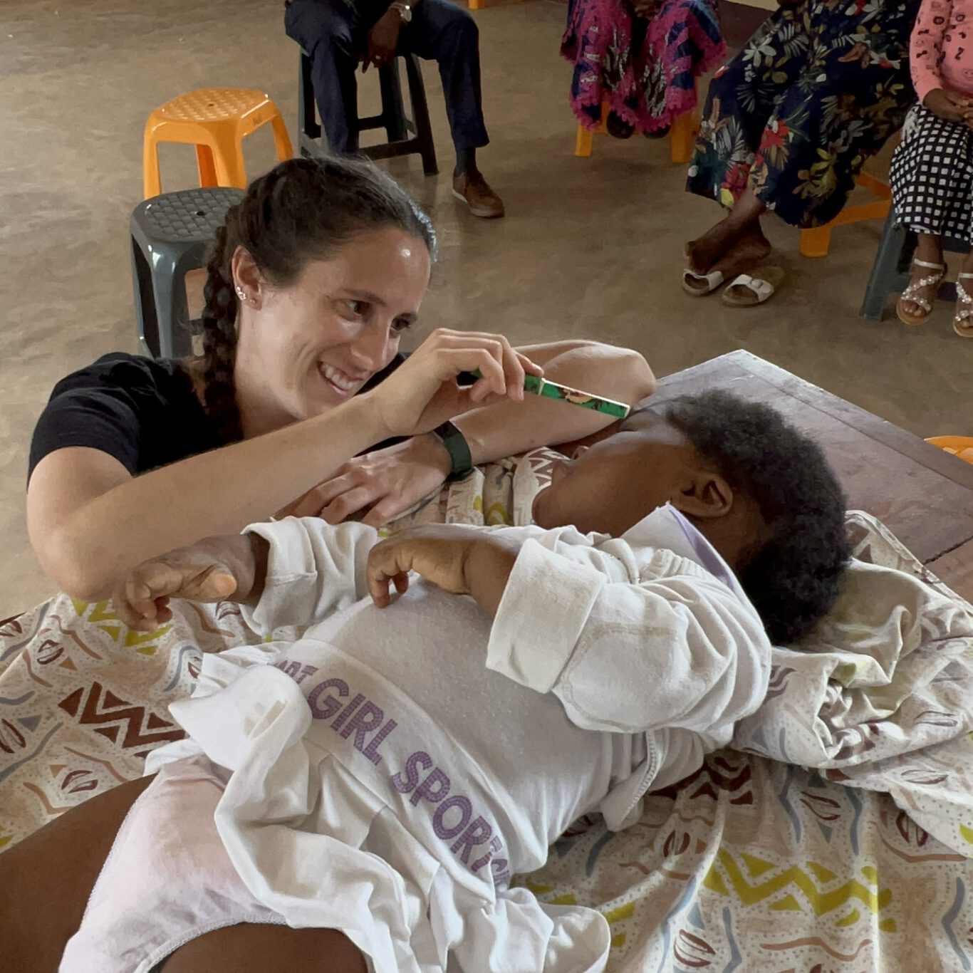 En nuestra segunda visita a Bikop se reevaluaron a los posibles candidatos para las cirugías de pie zambo de la futura campaña que tendría lugar a los pocos meses. Se realizaron los preoperatorios y las exploraciones oportunas para preparar a todo nuestro equipo quirúrgico en su viaje. Además se atendieron a las necesidades de los niños y las niñas condiversidad funcional y sus familias acudieron al centro para recibir de nuevo pautas y consejos personalizados para cada caso.